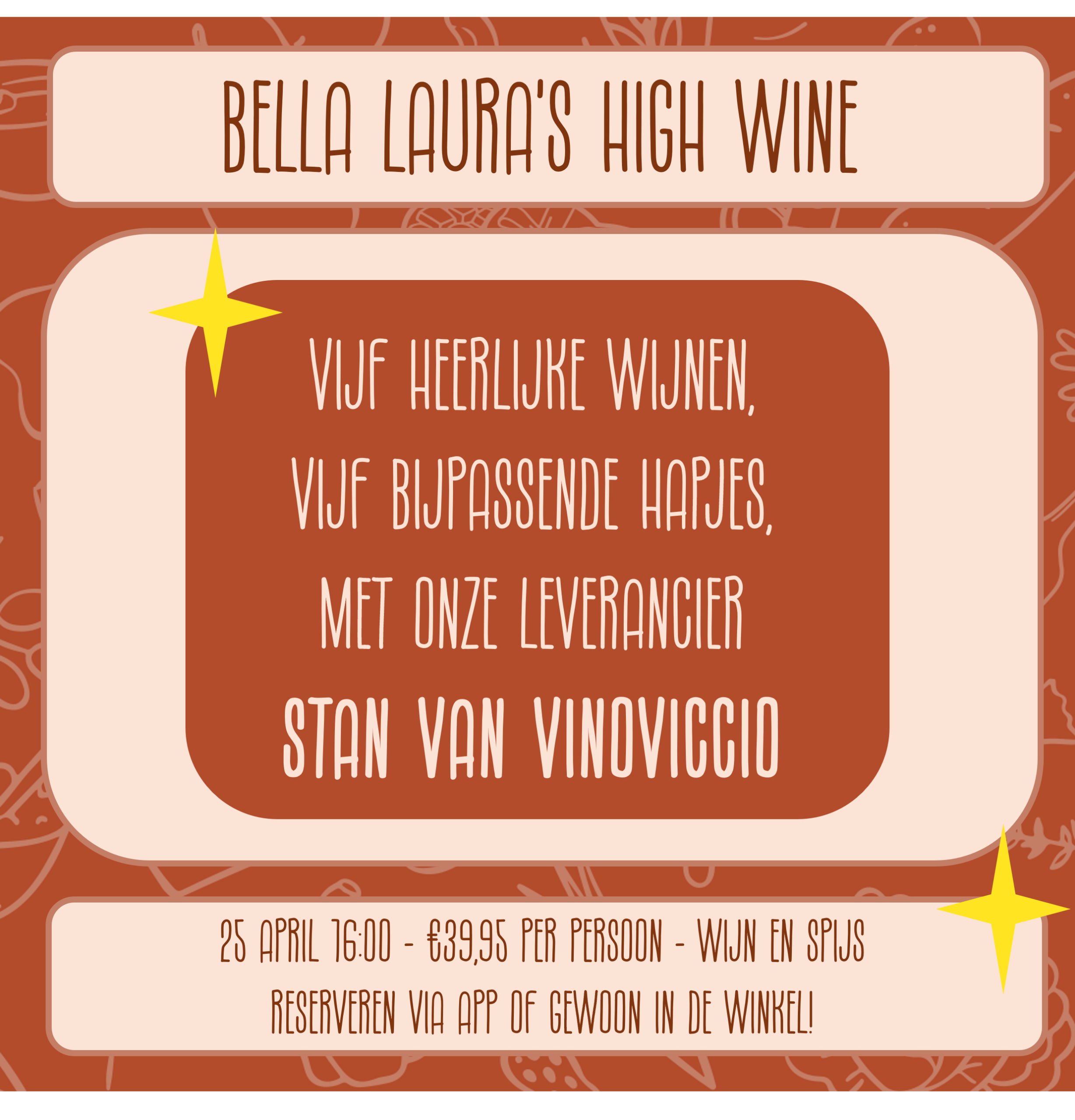 Voor de High Wine en de trattoria vragen we een aanbetaling van €20 p.p.